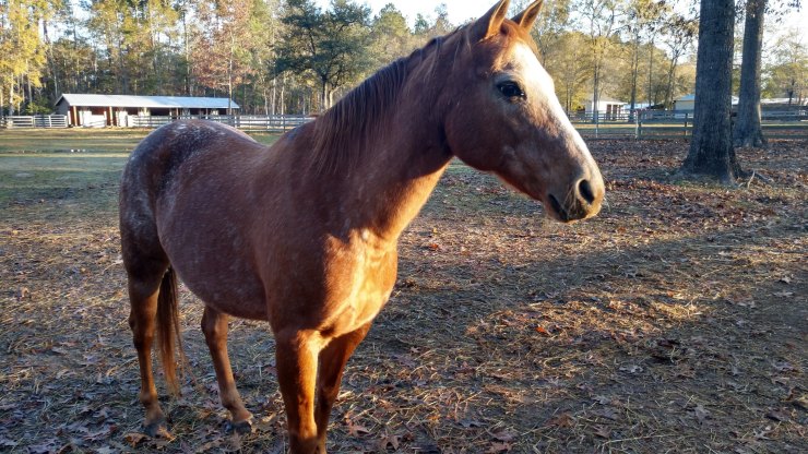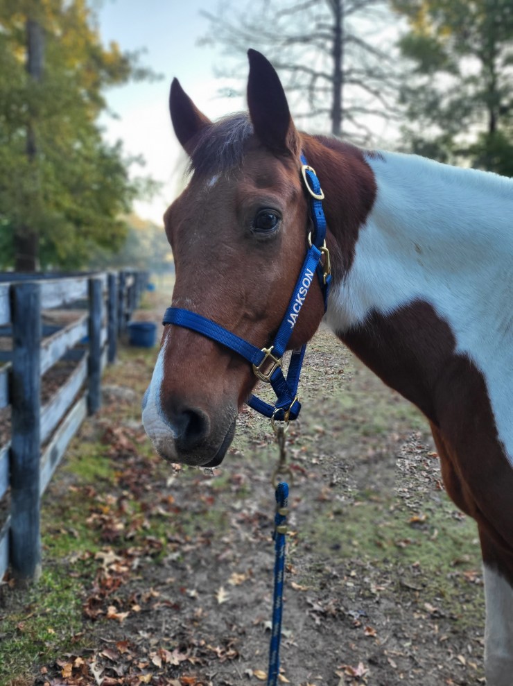 Jackson spent six years as a pasture ornament, before being surrendered to L.E.A.R.N Horse Rescue. He was adopted by Ms. Renee into our lesson program. Overweight and out of shape, Jackson needed a job to maintain a happy and healthy equine life. He has been a fast learner and has found enjoyment in the riding program. Still learning himself, he starts off his lessons a bit excited and thinking that fast is the way to get things done. Our goal for him and our students is to teach that slow and steady can get the job done in a more enjoyable and safe way. With this approach, riders learn how to be firm in leadership skills while establishing a horse and rider team that is constant and stable. On the other hand, Jackson’s ground manners are impeccable. Children love to groom and love on him as he stands quietly as they pamper him.
